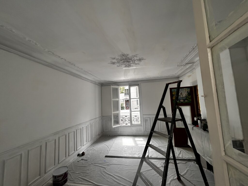 Peinture du salon dans un appartement rénové à Paris – MAKRENO rénovation intérieure